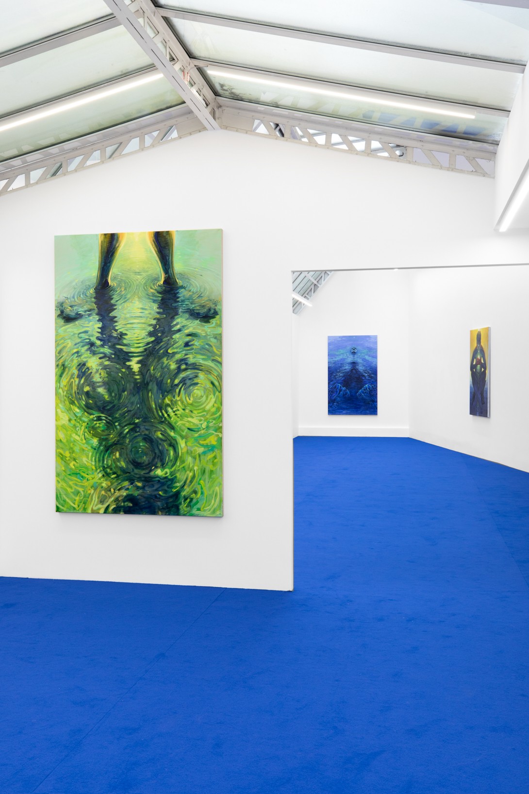 For his first solo exhibition in France, Gabe Cortese explores the theme of water, an omnipresent element in his daily life. Born and raised in coastal regions, the artist has always had a deep connection with this element, considering it essential to his existence. Water thus becomes the protagonist of his new paintings, offering Cortese a canvas on which he navigates between figuration and abstraction, playing with the texture and forms of his characters.