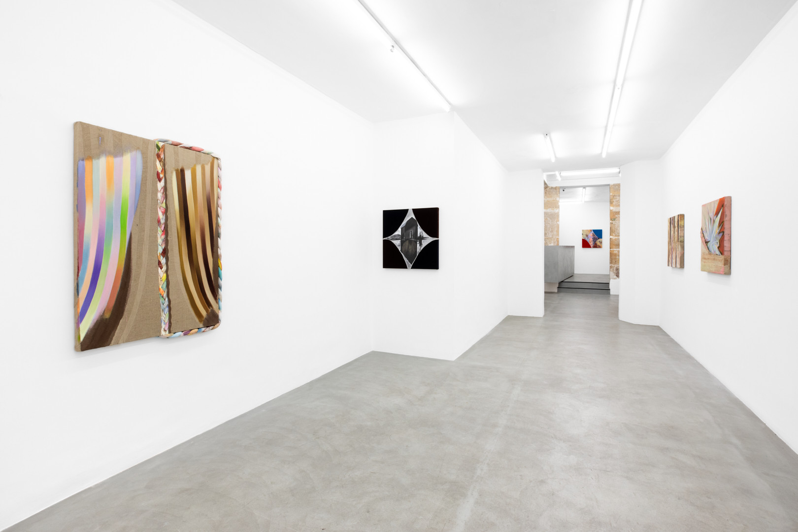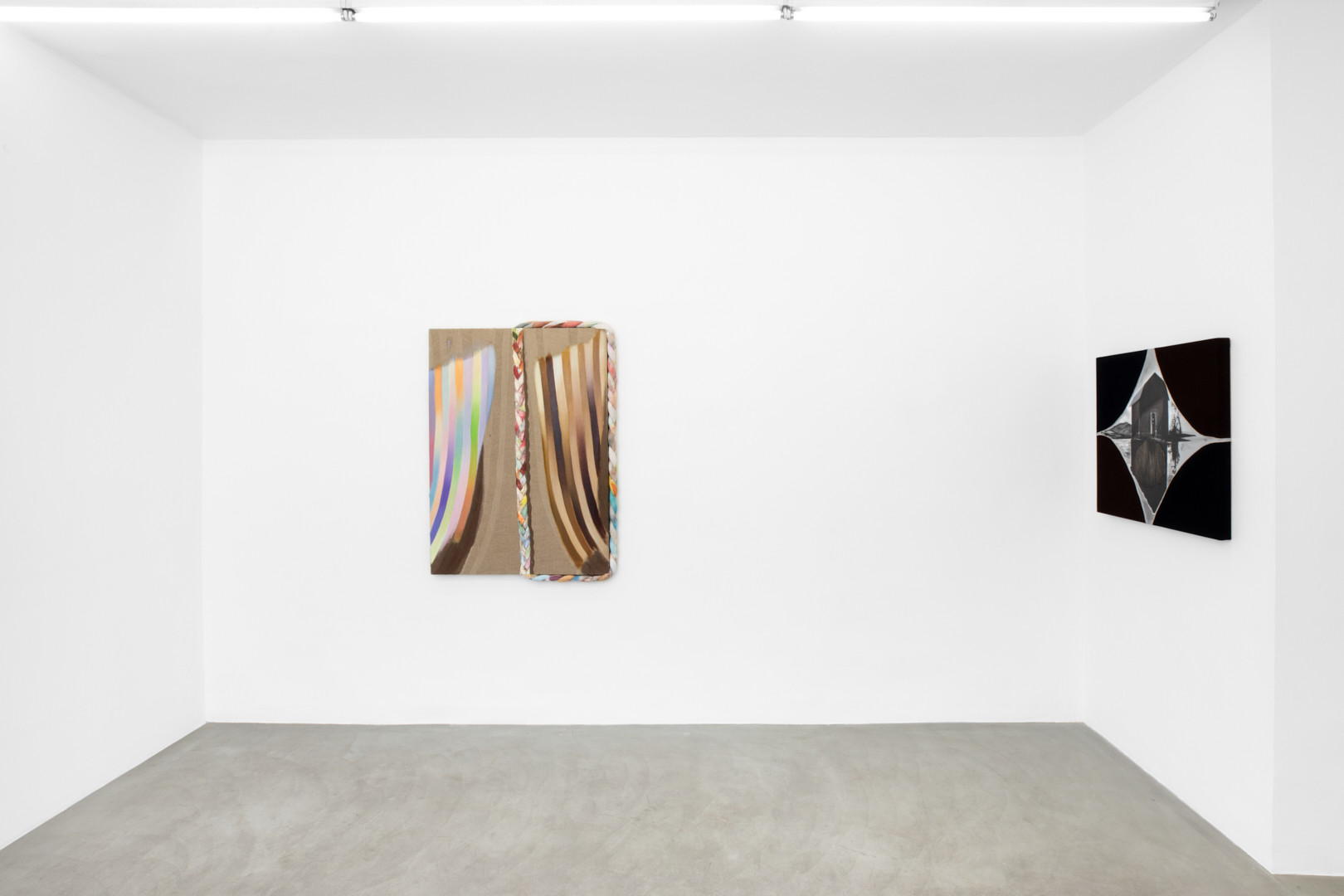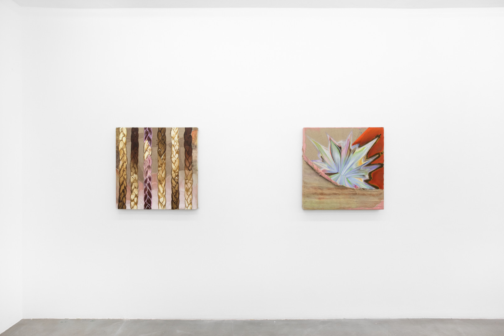 This question is one of several running through Elaine Stocki’s Jamais Vu, Déjà Vu. Across her practice, Stocki works in an intuitive register of material-as-metaphor, placing the tactile qualities of linen, watercolor, velvet, oil, and canvas into vivid experiments of color and composition. The braid surfaces as an apt motif; independent threads coalesce only to come apart, again and again, in rhythmic prediction and reaction. Evidence of the artist’s hand appears in stitches and seams. The mind flickers, the seasons turn.