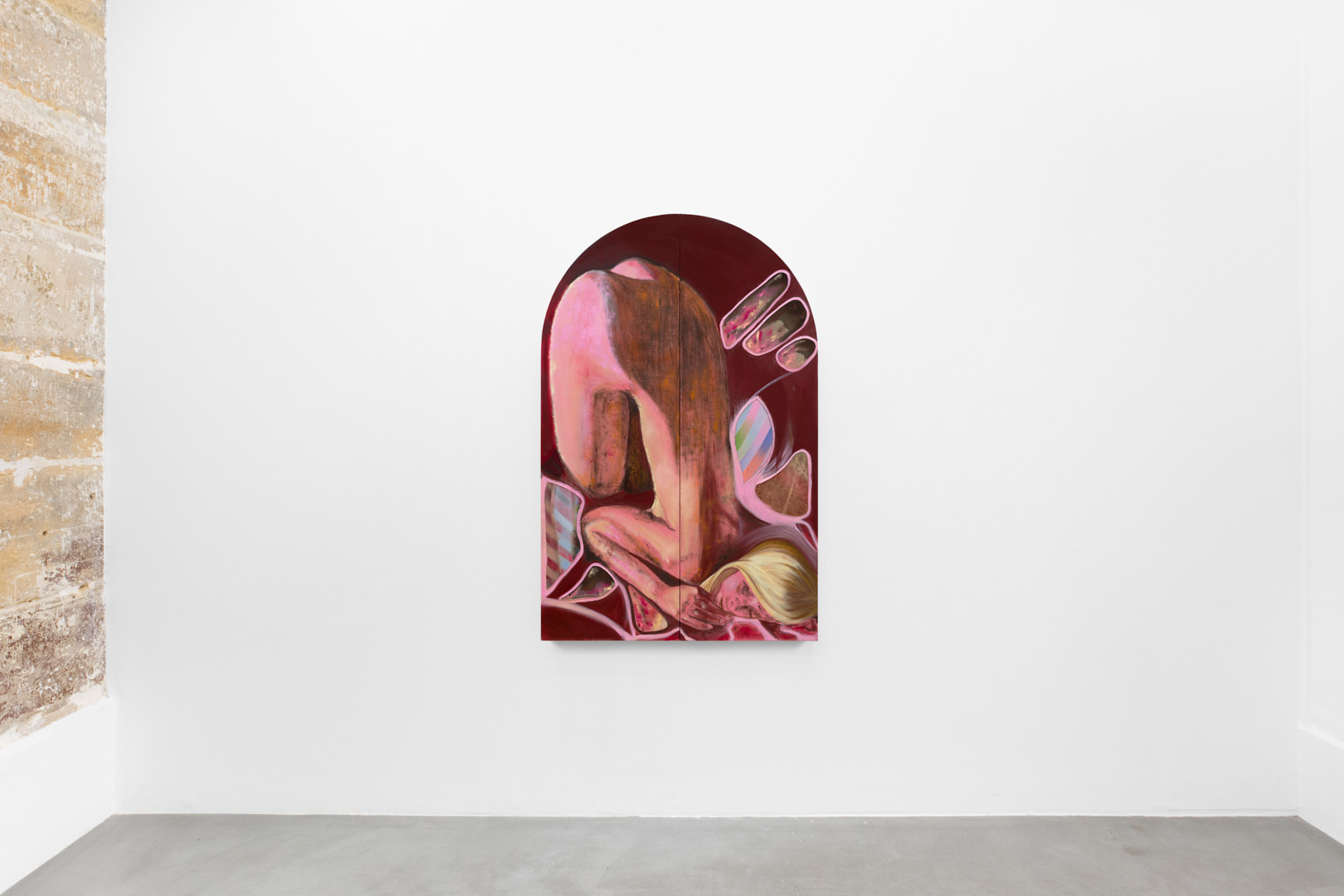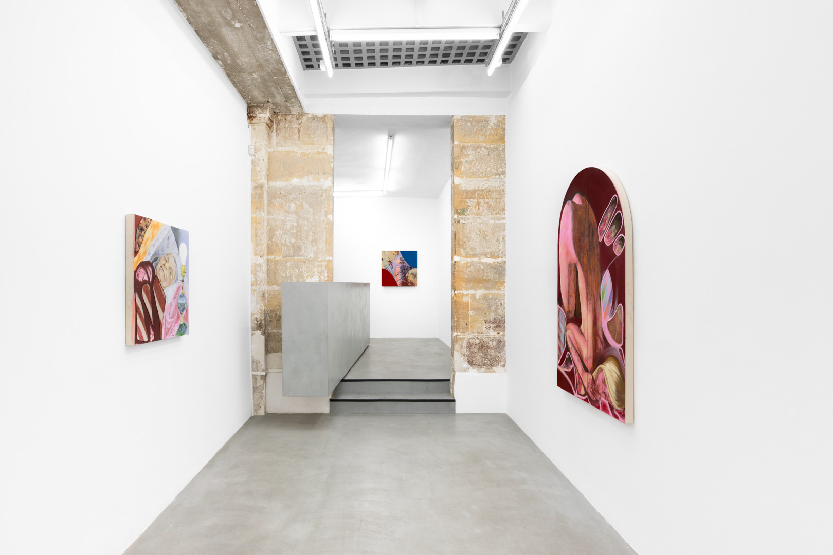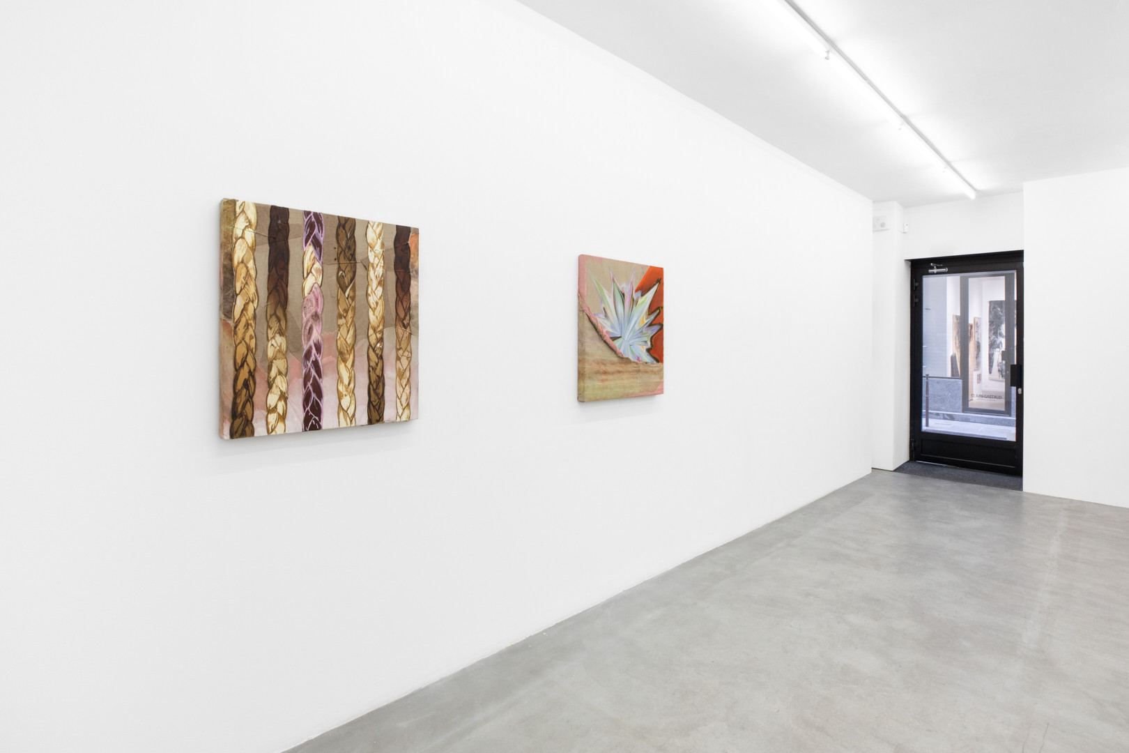 This question is one of several running through Elaine Stocki’s Jamais Vu, Déjà Vu. Across her practice, Stocki works in an intuitive register of material-as-metaphor, placing the tactile qualities of linen, watercolor, velvet, oil, and canvas into vivid experiments of color and composition. The braid surfaces as an apt motif; independent threads coalesce only to come apart, again and again, in rhythmic prediction and reaction. Evidence of the artist’s hand appears in stitches and seams. The mind flickers, the seasons turn.
