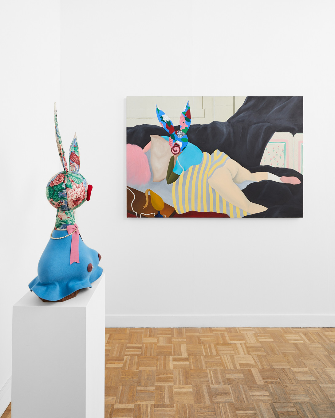 La Lapine de Luxe comprises a small suite of sculptures and accompanying paintings, that are product of Ryan Wilde’s accomplished career in millinery, the influence of and interest in painting, and her personal experiences in the context of fabricated, desired, and imposed identities.