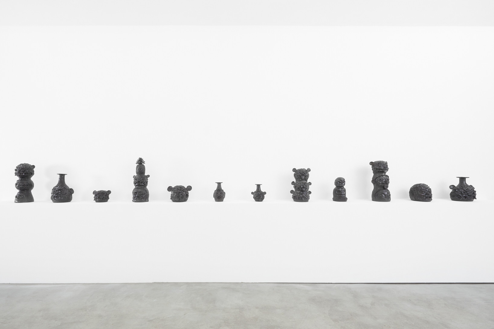 Kazuma Koike wants his sculptures to be perceived as found objects that existed prior to the artist’s creation. Ceramic is a perfect material for that, as the artist cannot fully control the creative process and the end result depends on the kiln. The artist likes to emphasize “the state where different elements coexist in harmony” by using the same black glaze on all of his sculptures, which also creates an ancient relic appearance, similar to the old Japanese tea bowls. In this exhibition, Kazuma Koike invites us to explore his unique and enigmatic artwork with the curiosity and enthusiasm of a Renaissance scholar.