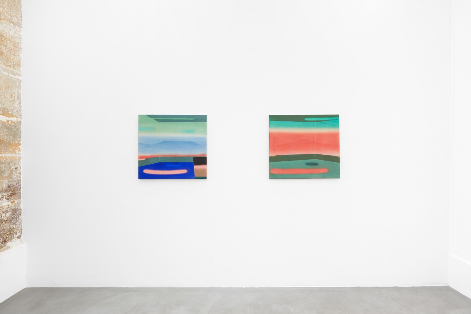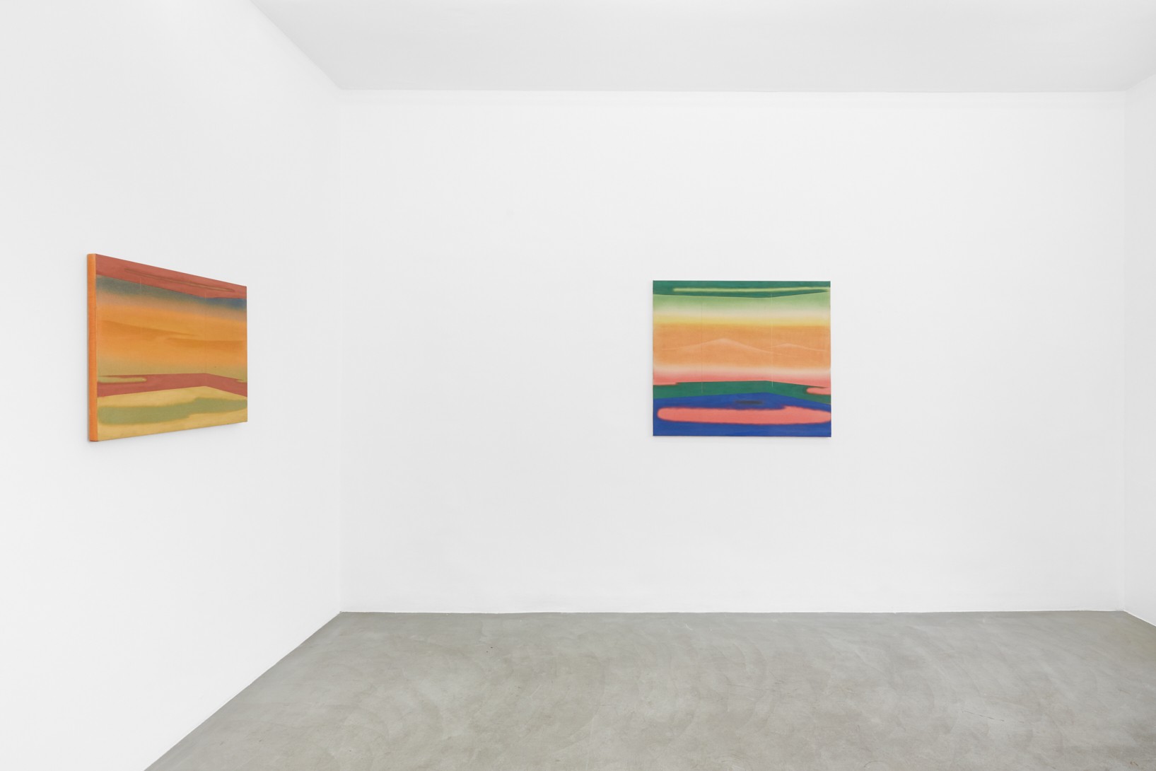 In this new series of paintings, nature and mountains take on particular significance. Inspired by legends from her childhood such as those of the Siebengebirge, where seven giants purportedly created hills to bring the Rhine closer to villages, Häfner explores the myths and legends that humanity has invented to learn to see the world, casting her own gaze upon it. Using chalk, oil paint, and acrylic, the artist works in instinctive layers, overlaying her memories. Her almost mystical representation of nature, framed by minimal architecture, creates a suspended atmosphere, an ephemeral moment. Häfner shares these unique moments with the visitor, inviting them to enter a captured, real or dreamt moment, conducive to contemplation.