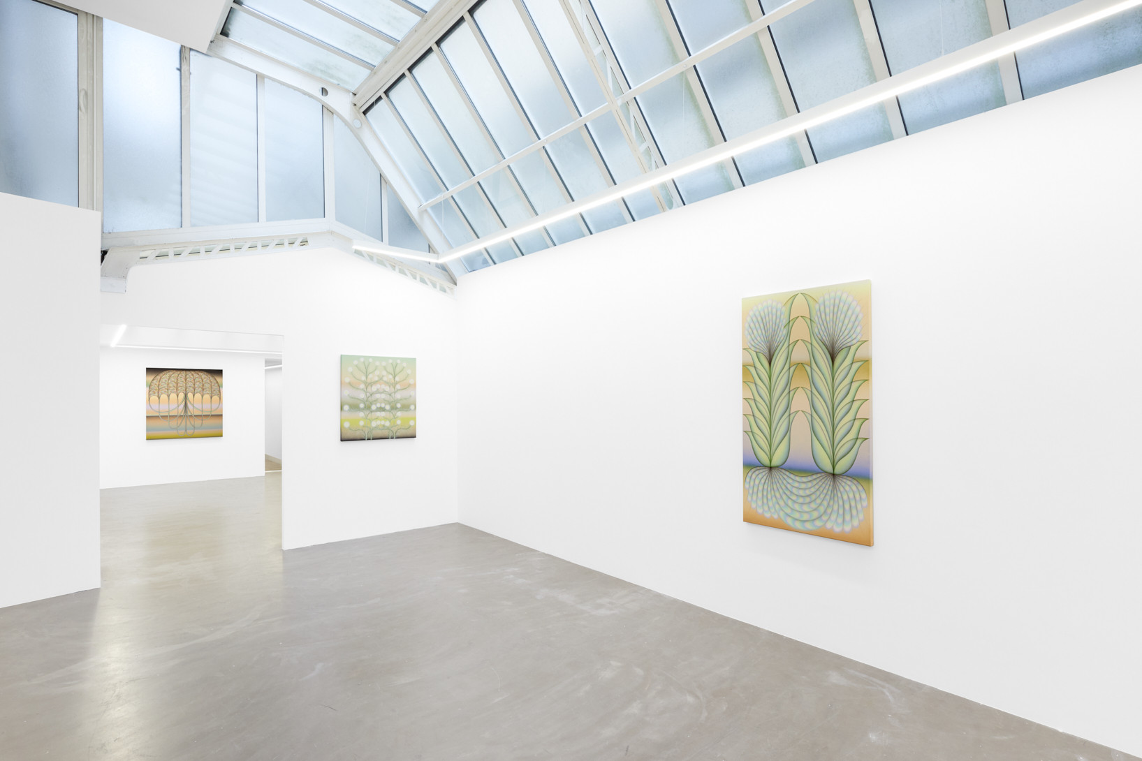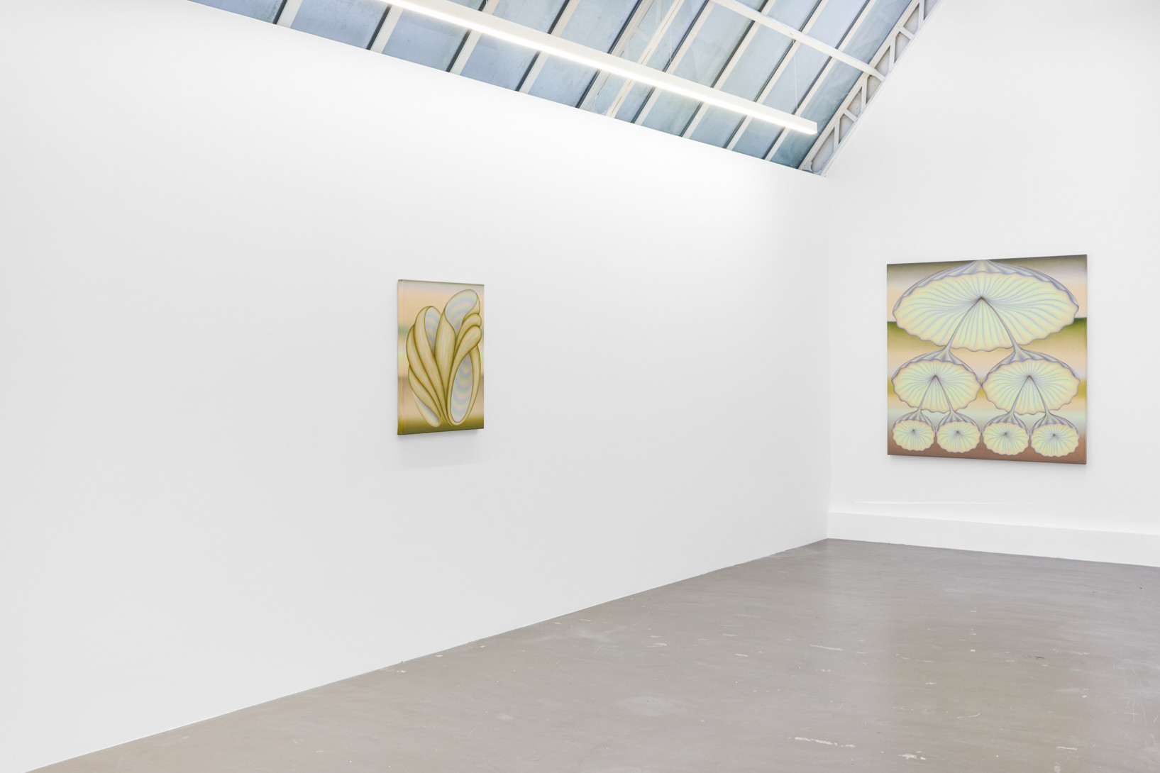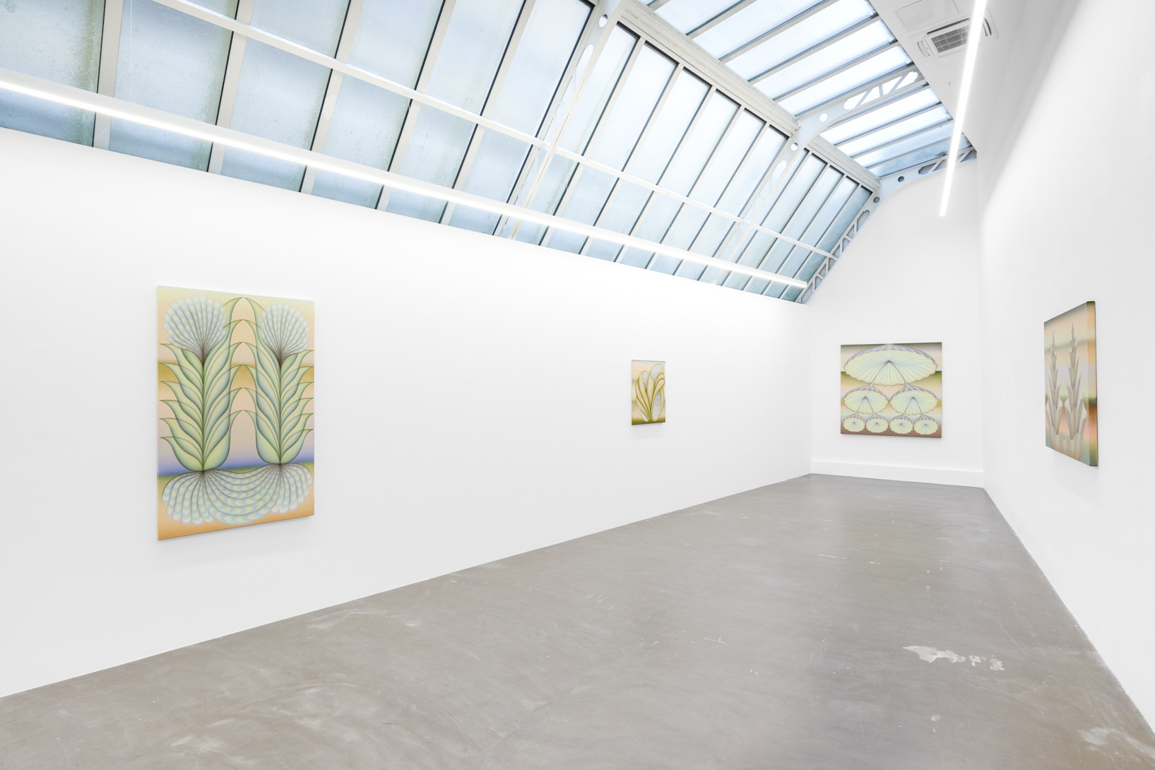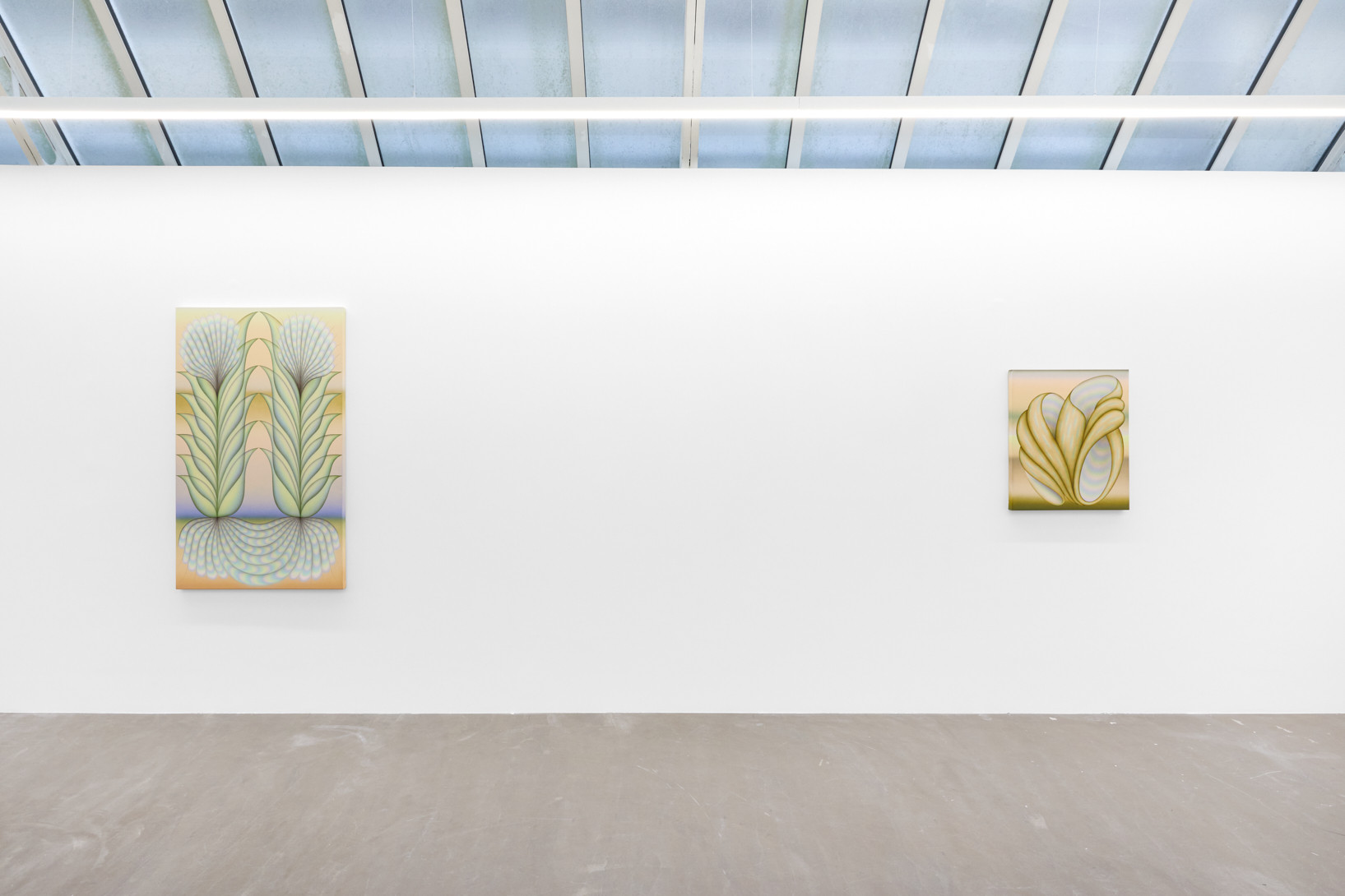 For her third solo exhibition with the gallery, Molly Greene (b. 1986, Cornwall, Vermont) explores the fascinating concept of encounters with other forms of life. Her artistic expression revolves around the delicate interplay between the familiar and the mysterious in our lives, including our relationships to plants, animals and technology. She is particularly interested in how communication shapes intimacy and the enigmatic nature of these relationships. It is this dialogue that she wishes to establish in this exhibition, through her vibrant imaginative forms in pastel colors.