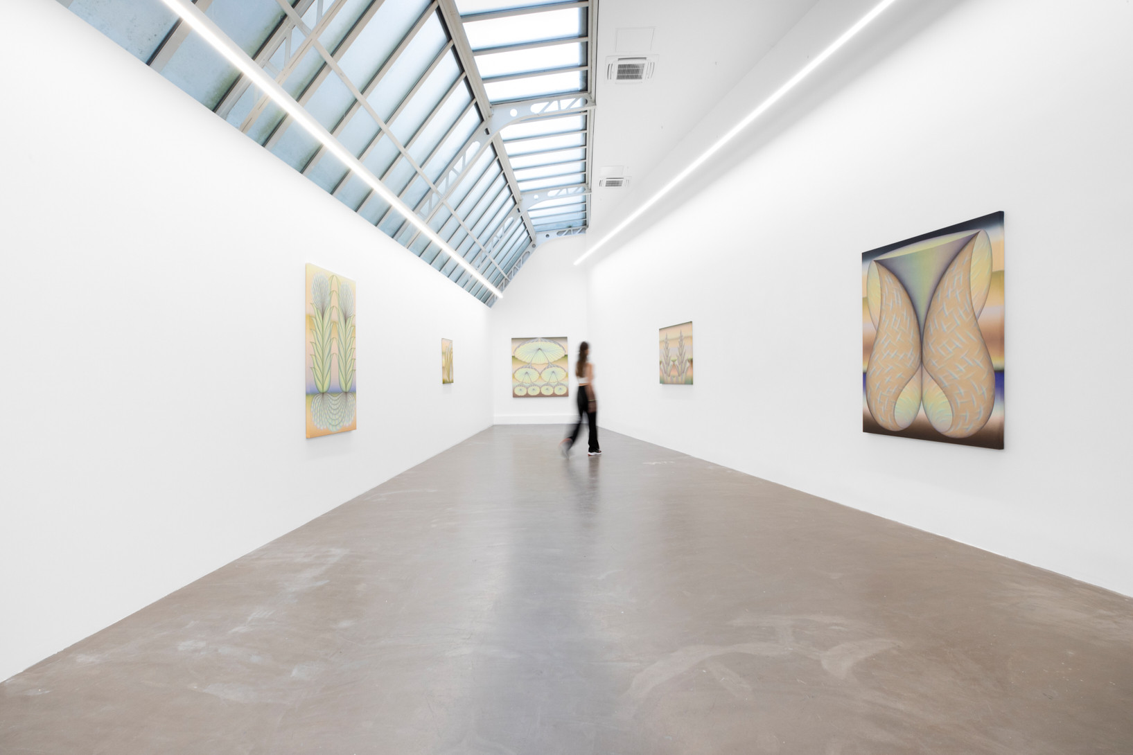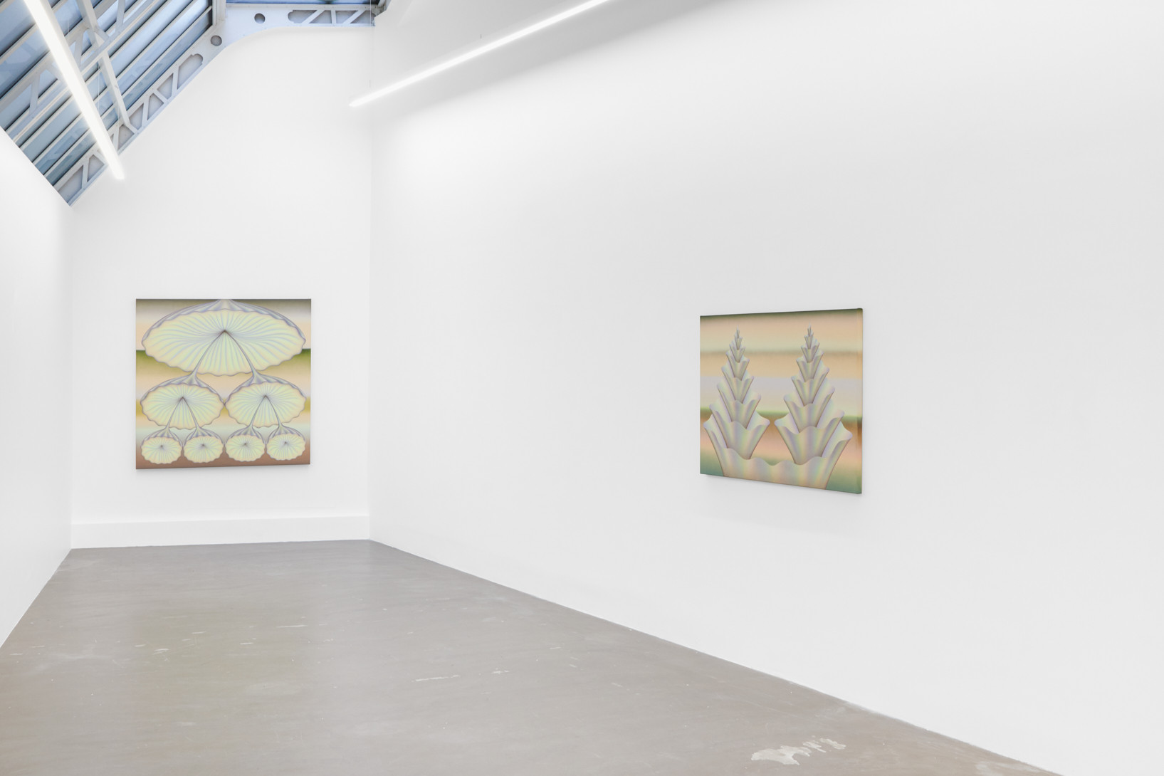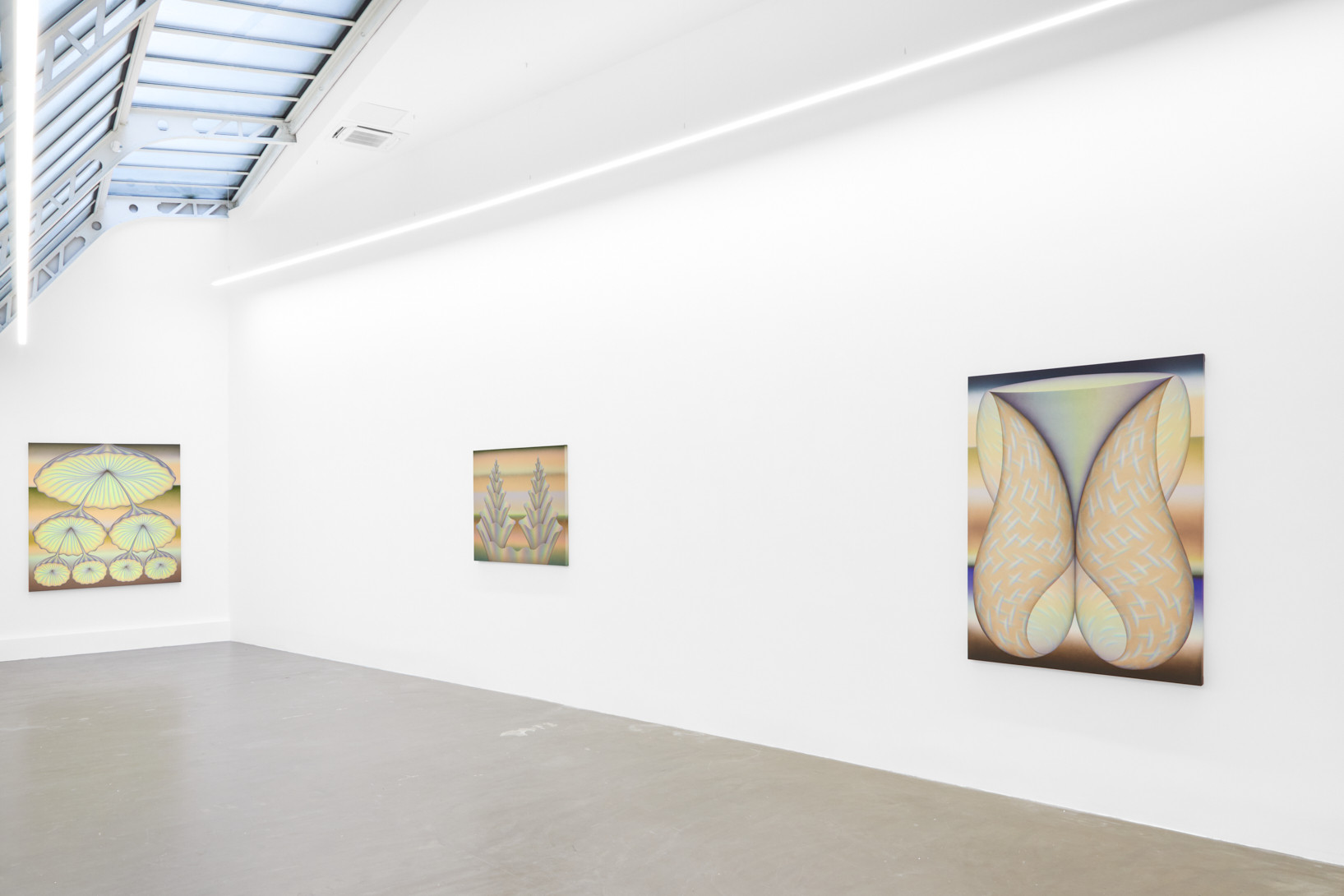 For her third solo exhibition with the gallery, Molly Greene (b. 1986, Cornwall, Vermont) explores the fascinating concept of encounters with other forms of life. Her artistic expression revolves around the delicate interplay between the familiar and the mysterious in our lives, including our relationships to plants, animals and technology. She is particularly interested in how communication shapes intimacy and the enigmatic nature of these relationships. It is this dialogue that she wishes to establish in this exhibition, through her vibrant imaginative forms in pastel colors.