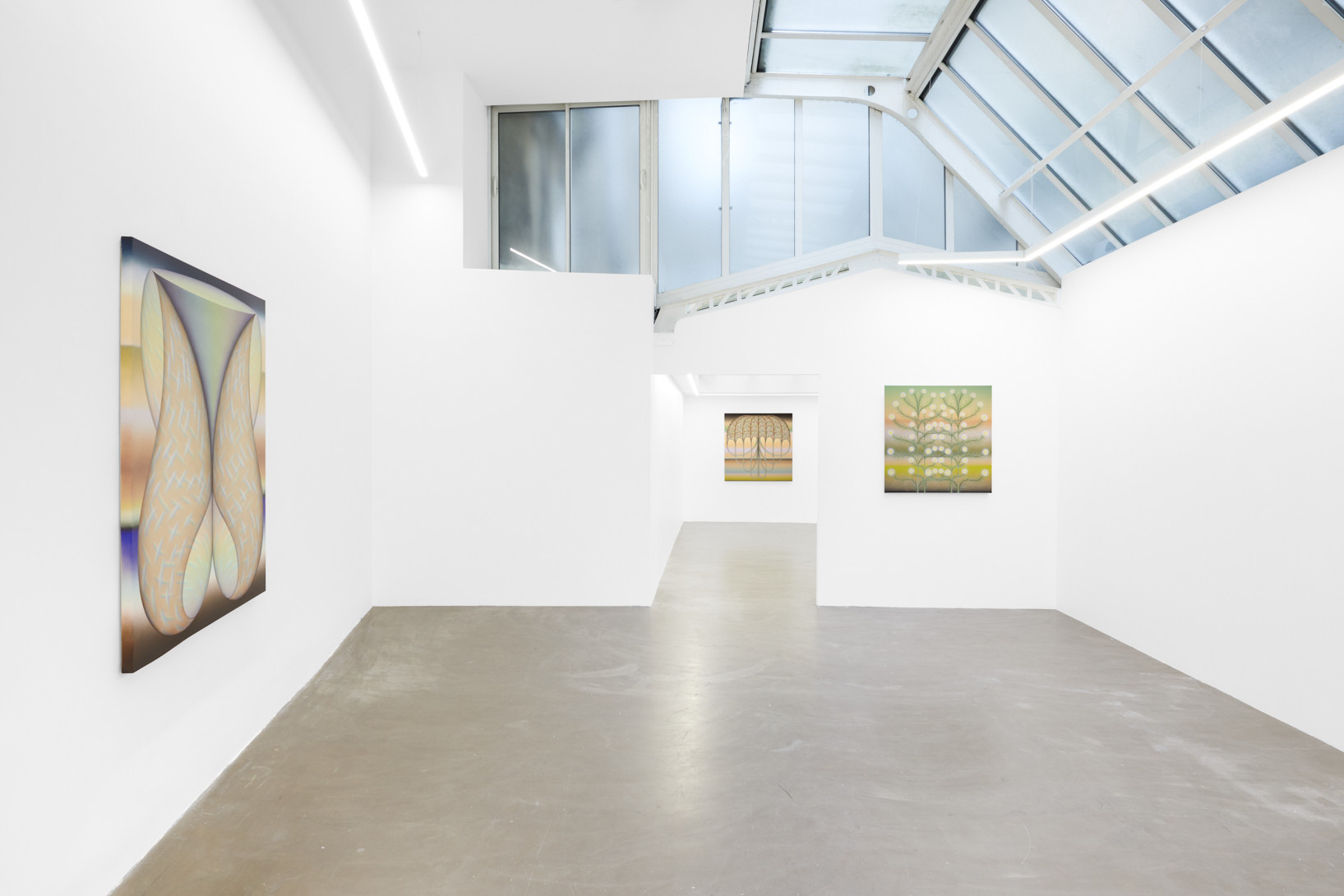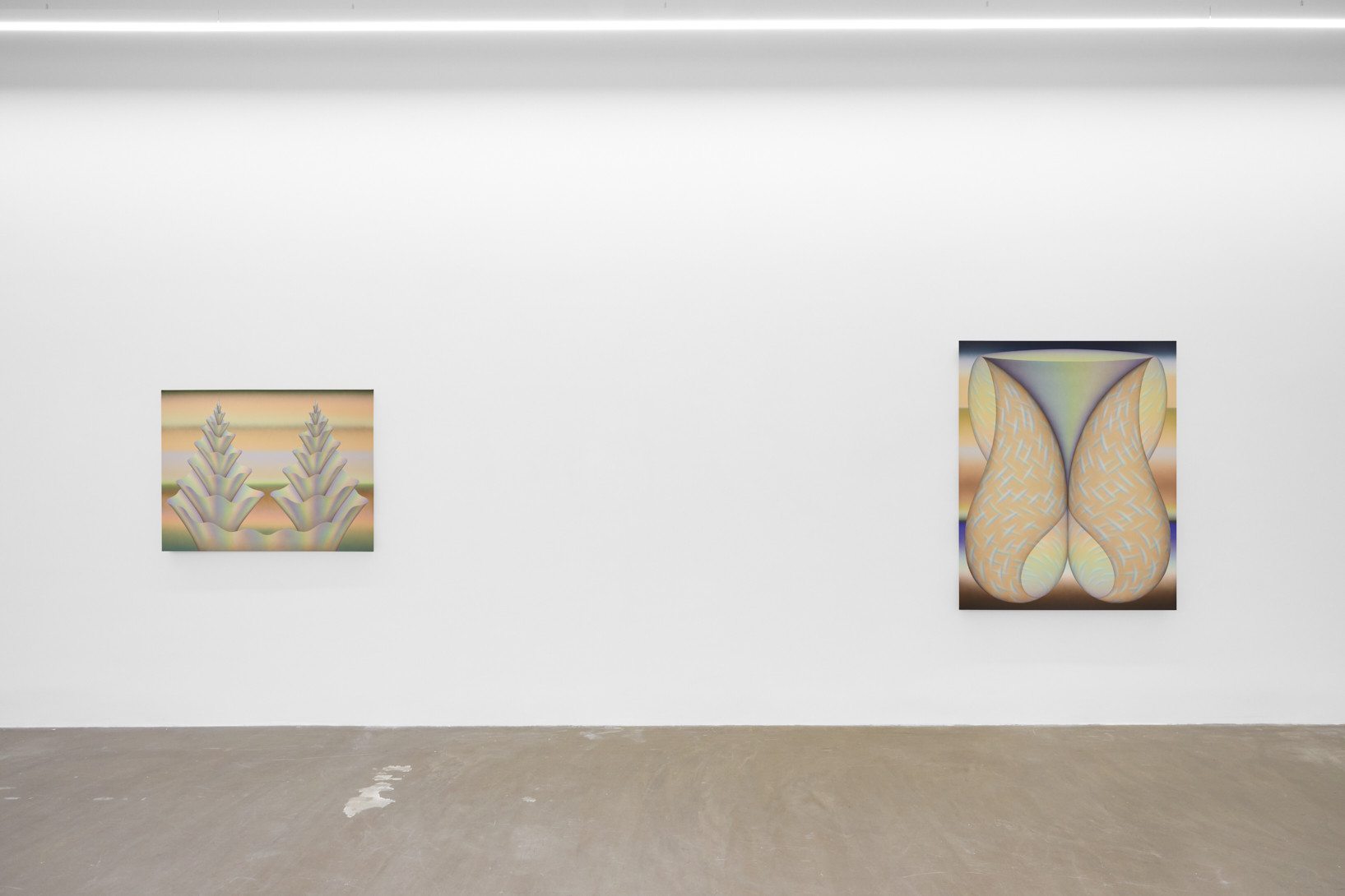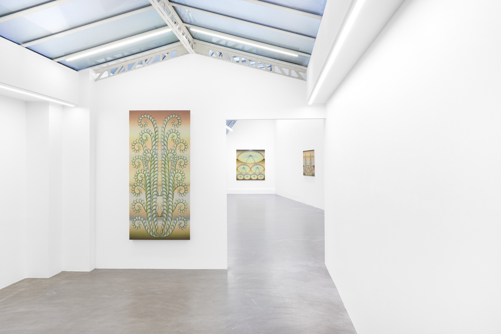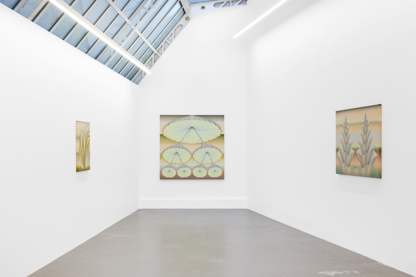 For her third solo exhibition with the gallery, Molly Greene (b. 1986, Cornwall, Vermont) explores the fascinating concept of encounters with other forms of life. Her artistic expression revolves around the delicate interplay between the familiar and the mysterious in our lives, including our relationships to plants, animals and technology. She is particularly interested in how communication shapes intimacy and the enigmatic nature of these relationships. It is this dialogue that she wishes to establish in this exhibition, through her vibrant imaginative forms in pastel colors.