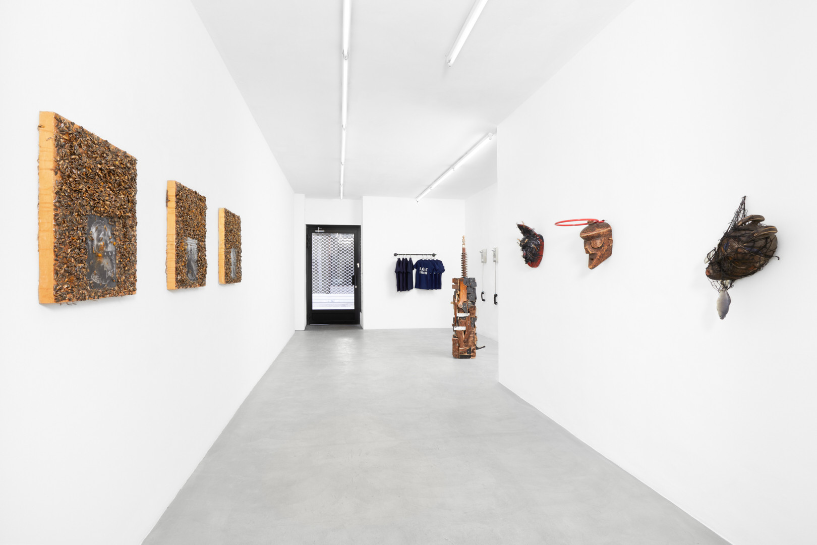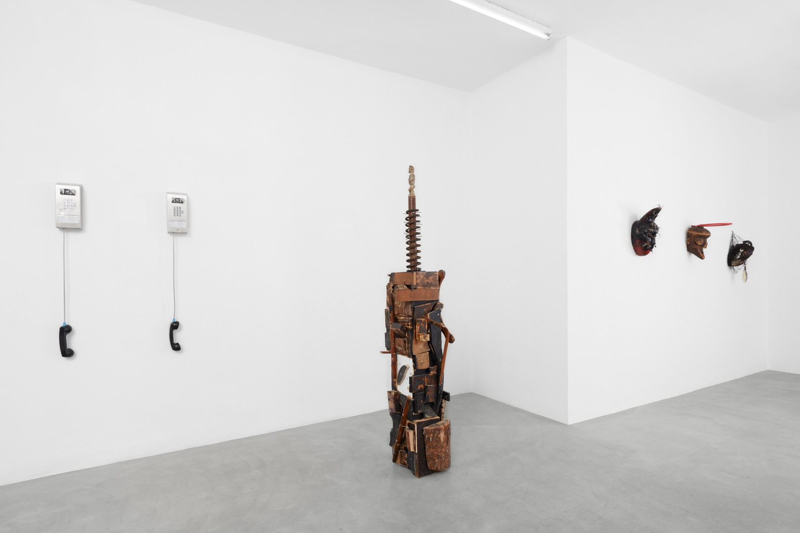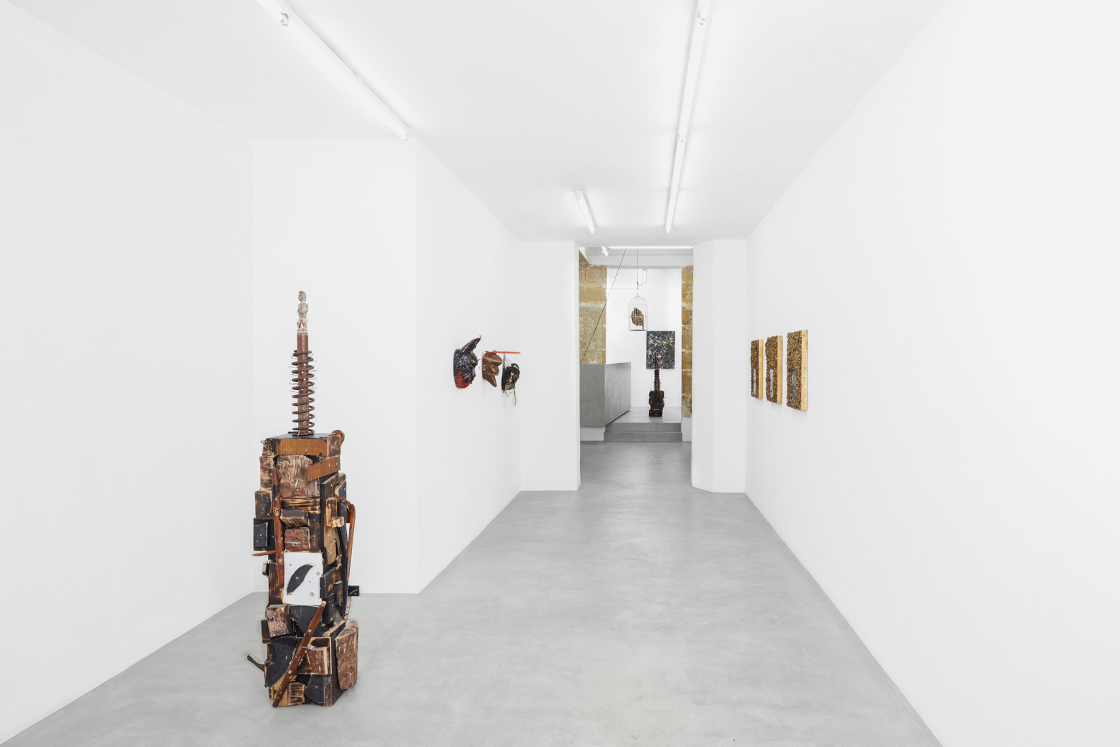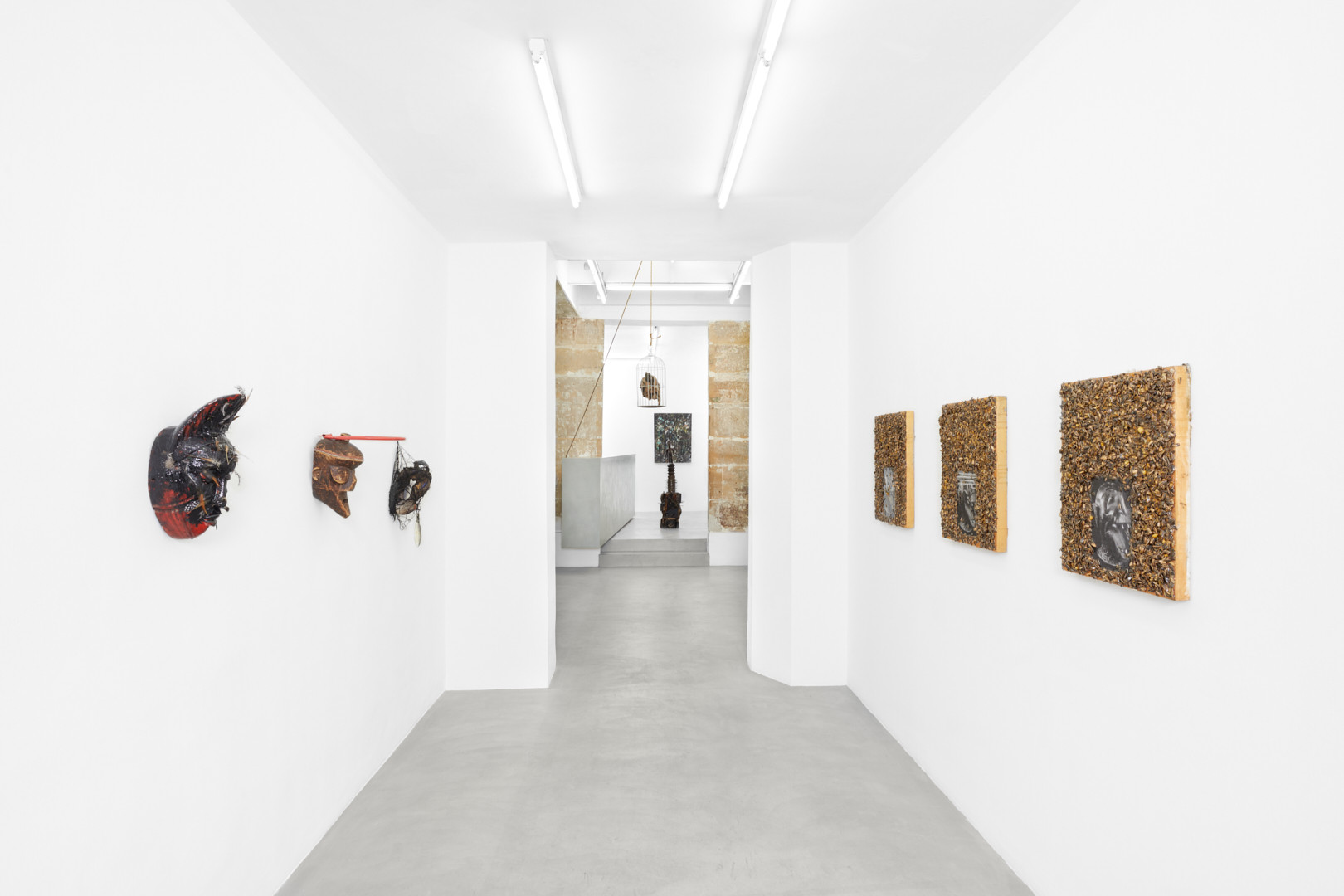 Emmanuel Massillon hits hard. He does not hesitate to confront taboo subjects. He sculpts with his own hands antique African masks and other fetishes. He endows them with weapons or scars – a rusted nail – sometimes a cage – a knotted fisher’s net. As such he reinvents his own ascendancy. He fills the holes of an African American diaspora, born of slavery and of colonies, but who in the end forgot the original continent for an excluding and lesser American dream.