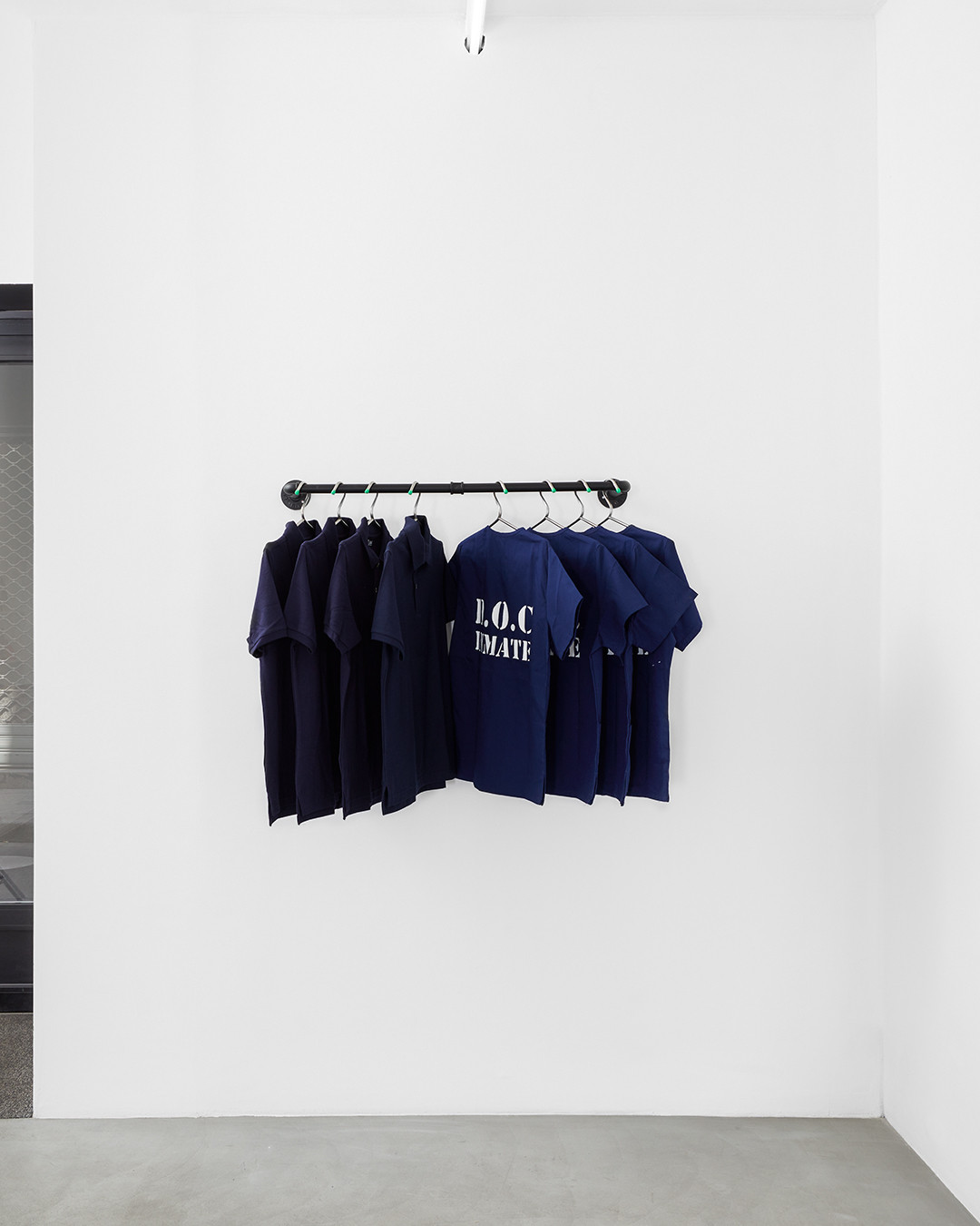 He plays with the clichés of the American Dream. In a similar fashion to the Easy Transition installation, where the public school uniforms were fronted to those of prisoners’, reminding of the School to Prison Pipeline theory: the dress code, and other regulations of the American school system, favouriting the passage from school seats to those of a cell.