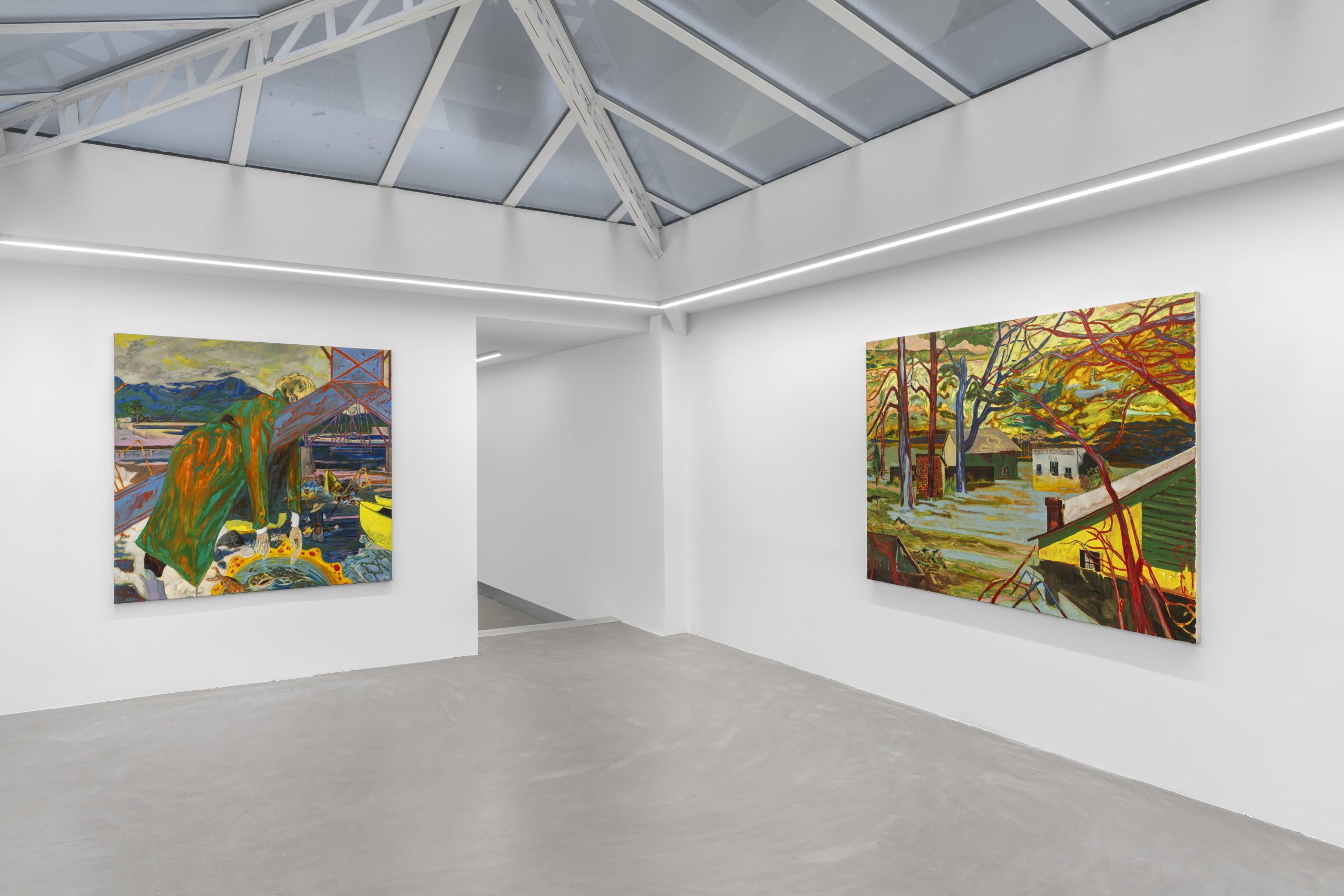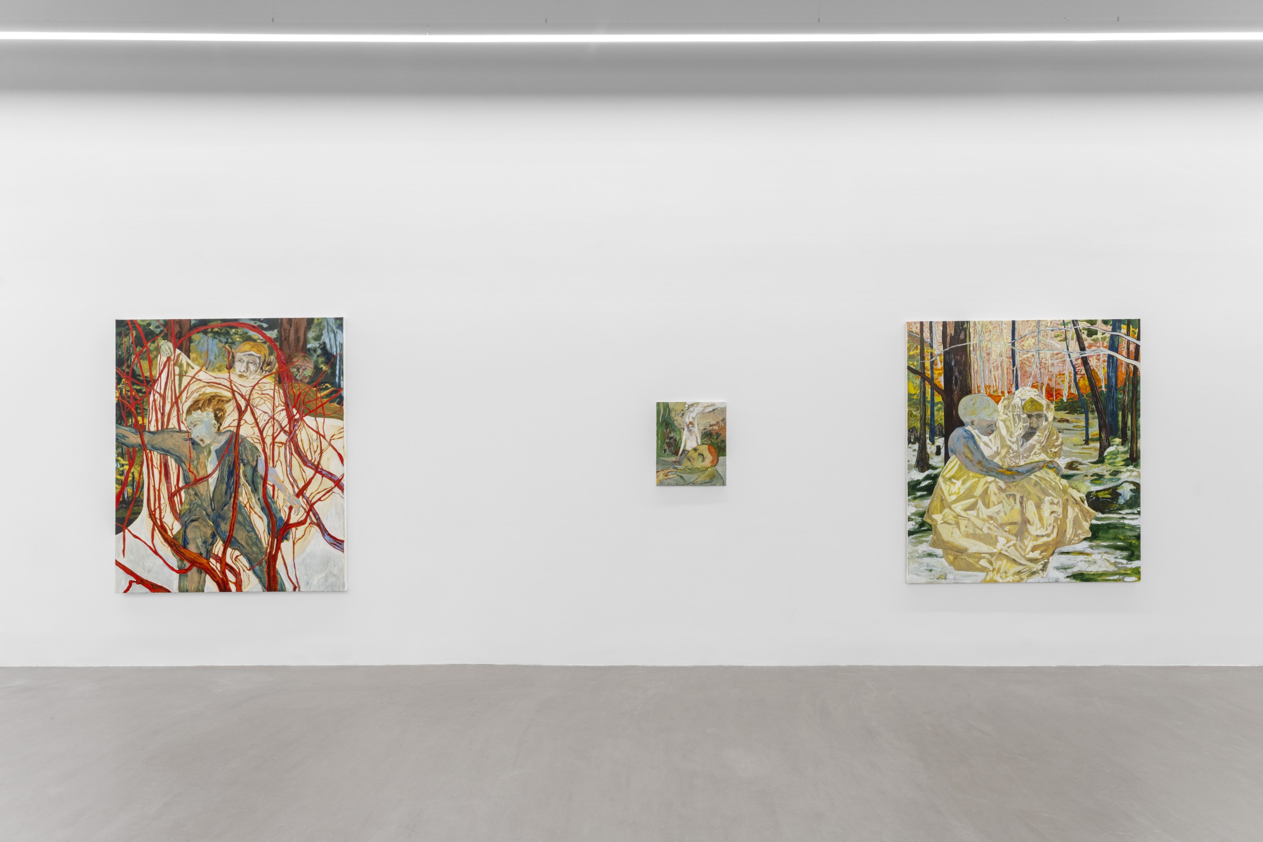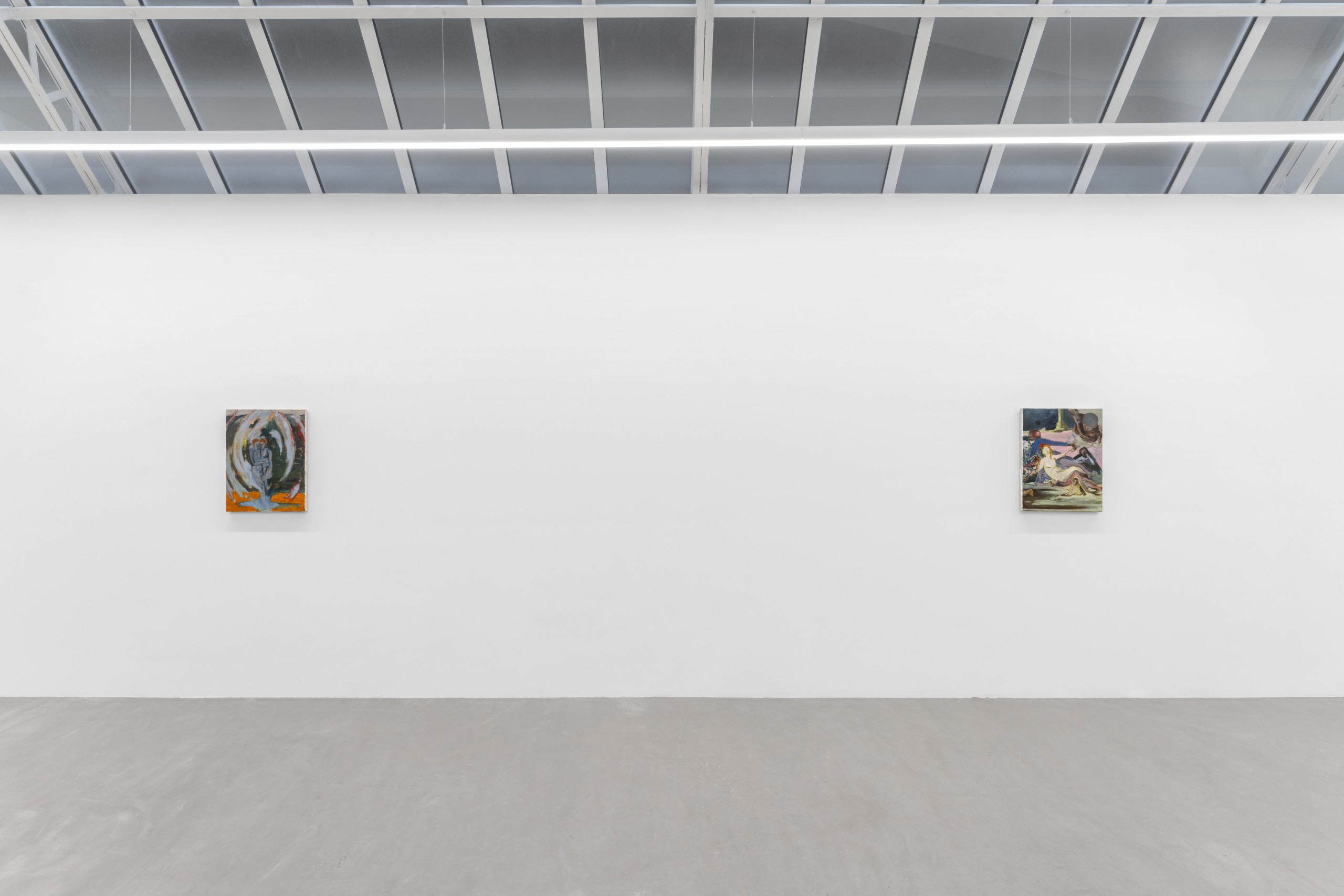 Sur les rives de l’Ohio, la terre natale entre les lacs, faite de mystères et de légendes, s’invite une cohorte douce-amère de personnages et de situations étranges, tantôt références autobiographiques, tantôt images de faits divers. Puis tout se mélange, le rapport au corps et le rapport au paysage, à la transformation des éléments comme à la transformation liée au cycle de la vie : une transmutation commune, où nature et homme ne sont pas dissociés, et deviennent créatures, chimères. Où la fluidité sexuelle s’invite, effaçant toute catégorisation simpliste et permet d’évoquer “l’autre-moi”, cet “otherness” qui permet de se découvrir et de se cacher en même temps. Une figure angélique, cheveux longs auburn dans le vent, regard perdu, joue à saute-mouton, à côté d’un saint Sébastien sculptural et transpercé. Au loin, deux silhouettes évoquent Adam et Eve, perdus dans un paysage vide. L’absurdité des hommes est sublimée : jouer face à la mort, jouer de la mort, jouer avec la mort.
